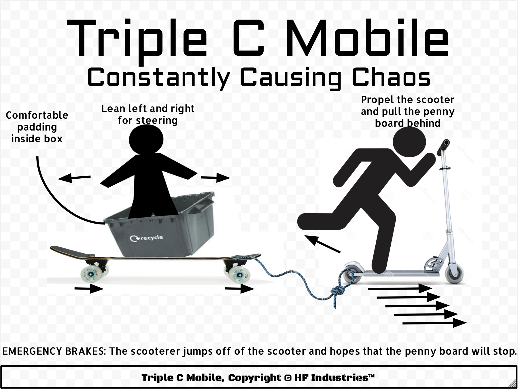 Frank’s birthday is the 20th of August, 2006. We met when he was nine and I was ten, because I was brand new to the area and about to start in his class at school and it just so happened that we were basically neighbours. He knew my garden before I did because he was always crossing the stream into it to get back his footballs from the old owners, Tim and Judy, and I knew Frank’s cat before I knew him because the cat was always coming into my garden, too. We probably wouldn’t have met before school started except my mum really wanted me to make friends and so she brought me round to his house — the proper way, not through the stream — with a tray of oatmeal and raisin cookies, and the first thing that Frank and I ever bonded over was how terrible those cookies were. Replacing chocolate chips with raisins was, we decided, a capital offence. And then we were friends. I don’t remember ever having a sense of becoming his friend, he was just there one day and that was that. I guess that is just how friendship works when you’re that young but it was still pretty great that we ended up getting on so well. Frank was voted the funniest person in our class in the Year 6 Leaver’s book and there really wasn’t any competition. He could make anyone laugh and so everyone loved him, obviously. I like to think that I loved him the most out of anyone but plenty of the girls did actually fancy him so actually it’s hard to say. Frank wanted to be a lot of things and I believed wholeheartedly that he would manage one day to be absolutely all of them. He wanted to be a writer and an actor and an architect, and to change the world. He had plans. So many plans. We started writing a book together, a sort of survival guide which ironically died in its early stages but was still incredibly fun to brainstorm for what felt like months but was probably only an afternoon or two. We designed an entirely novel form of transportation — the Triple C Mobile (Constantly Causing Chaos), which was in fact just a recycling box strapped to a pennyboard which was tied to a scooter. Diagram as follows, because we did in fact take ourselves very seriously. The HF in HF Industries™ stands for Hana and Frank, obviously.